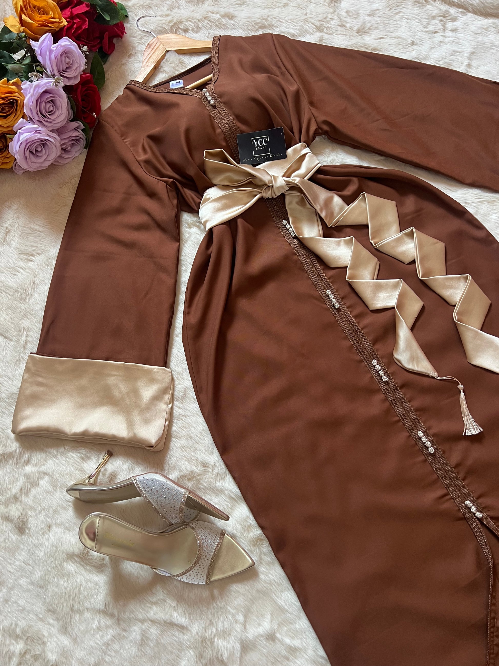 قفطان جزائري فاخر من قماش الكراب بتصميم أنيق يجمع بين البساطة والرقي.